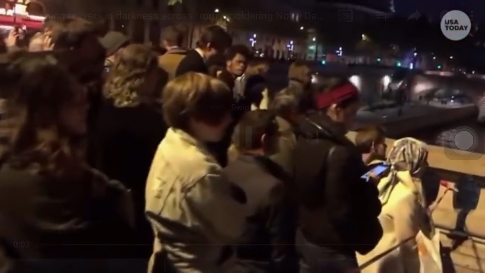 刷了一天巴黎圣母院火灾的新闻,终于在这段录像前没忍住眼泪。人们自发地唱起圣歌注视着火中的巴黎天际线,恐惧毫无保留地映在歌声、眉头与眼泪中。除了建筑、文物与玫瑰花窗,这里更大的意义恐怕在于静默地见证了无数存在又逝去的人们对信仰与自我所吐露的真诚、欣喜、惶恐或悲伤,每寸石头与木头,都共振过几个世纪以来的歌声与低语,直至此刻此时。这种跨越时代与信仰的连结,是修复不来的。