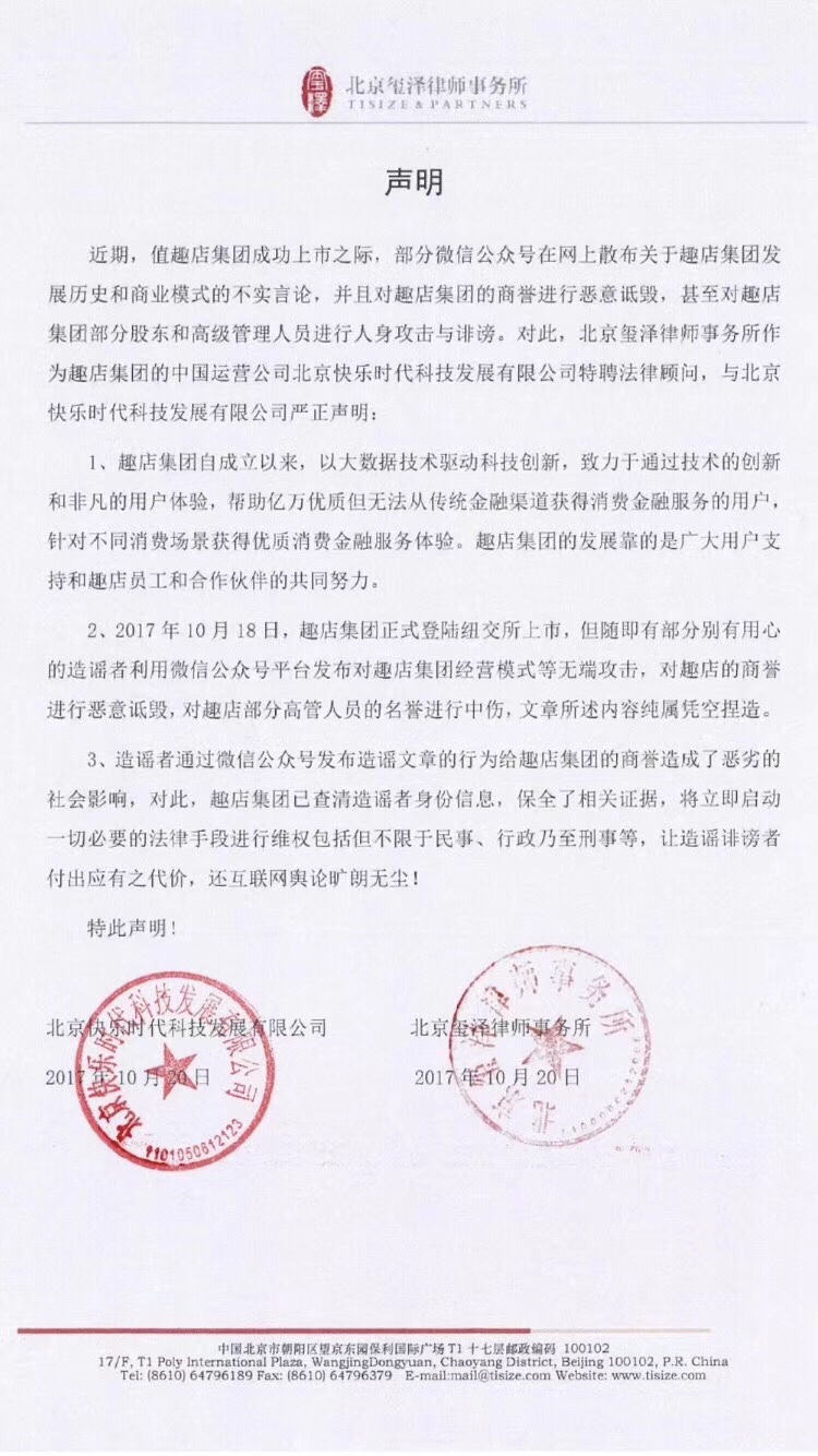 趣店IPO,连续两个交易日增长超过20%,市值115美元,成为仅次于BAT、京东、蚂蚁、网易、滴滴、美团、微博、携程、今日头条的第十二大互联网公司。不过,却遭致许多媒体的口诛笔伐,因为“现金贷”这个业务,导致了不少底层人士陷入雪上加霜的资金困境,甚至出现一些极端个案。我的看法:现金贷不过是金融工具,有利有弊,企业法无禁止即可为,逐利更是资本天职,道德不过是遮羞布而已,在商言商,指责趣店无意义。不过,看到这个回应,也太不专业了…