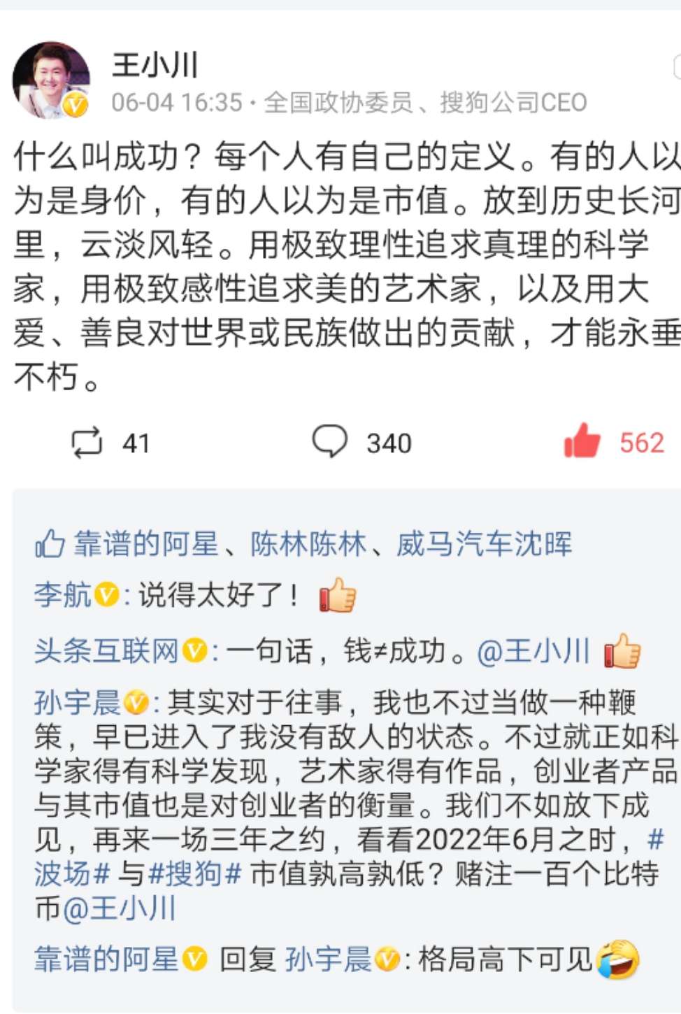 巴菲特是百年来无出其右的投资大师,其财富建立在公司股权制度的基础上,公司的市值与相应的股权和股票价值是直接挂勾的。但是区块链本质上是颠覆公司股权结构的,不依赖股权的利益分配机制直接发币或者token进行利益分配,再把用户也转化为投资人,不需要成长之后上市,而是一出生就随时上交易所交易,孙宇晨花费天价拍下巴菲特午餐是赤裸裸的投机,此前孙宇晨还为推销其数字币而自封诺贝尔经济学奖候选人