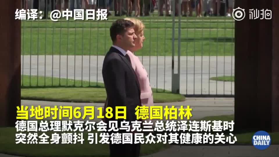 默克尔接见乌克兰新总统时突然浑身颤抖。当地时间6月18日,德国总理默克尔在柏林接见乌克兰新任总统泽连斯基。在国歌奏响时,默克尔突然浑身发抖,全程持续近1分钟。她随后在发布会上解释,喝了至少3杯水后身体已恢复正常,发抖是脱水导致的。德新社称,这不是默克尔首次在烈日下出现身体颤抖的情况,之前也是因为缺少饮水导致的。(via 中国日报)