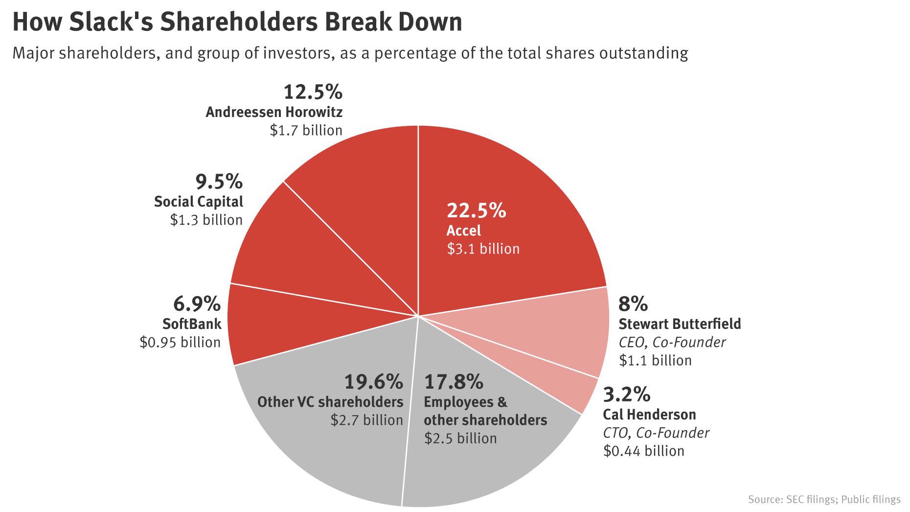 上市首日大涨 48%+ 的 Slack 背后有不少故事可挖,比如我们可以用一张股权架构图串起整个故事线。