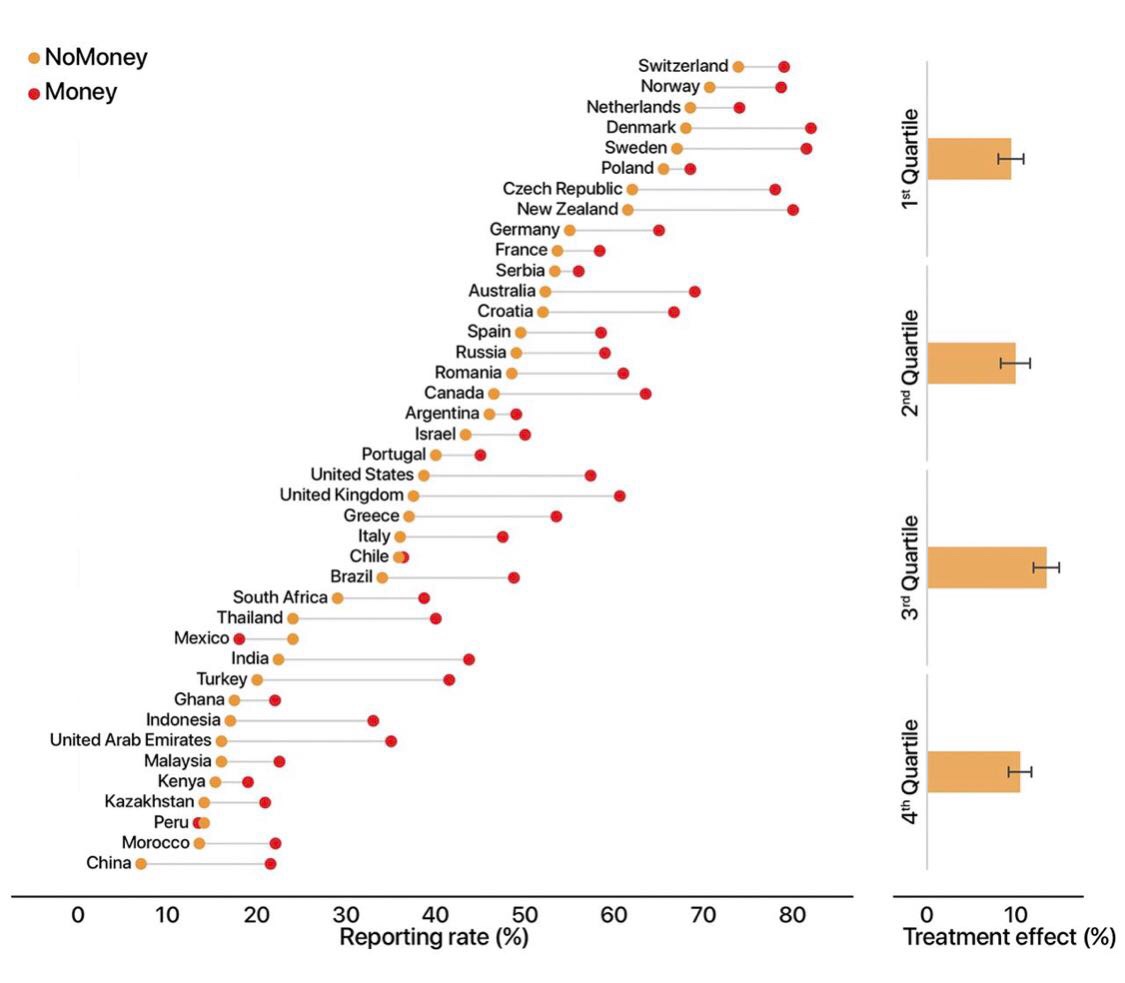 法广网:一个研究团队在40个国家355座城市进行了大型实验「全球公民诚实度(Civic honesty around the globe)」,观察各国人捡到「有钱的钱包」和「没钱的钱包」后的反应。