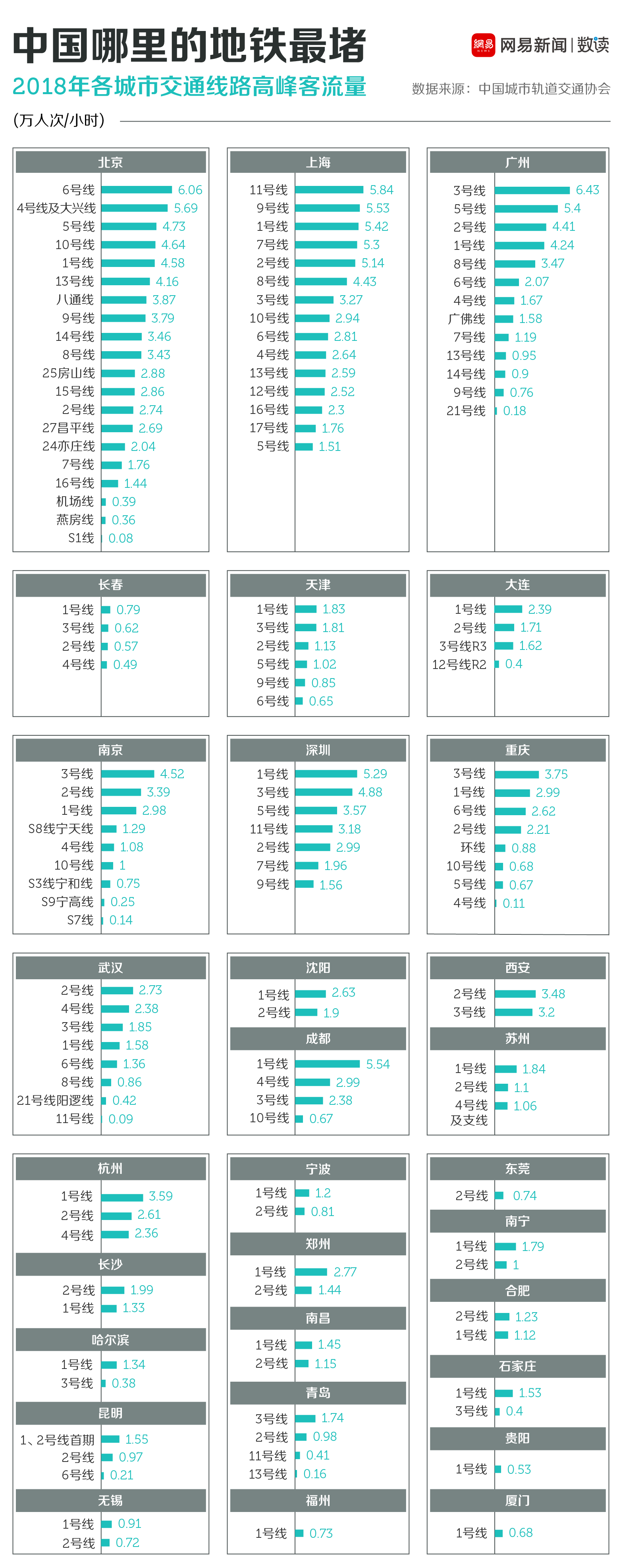 全国最挤的地铁线是?广州3号线:没错,就是我! (via 网易数读)