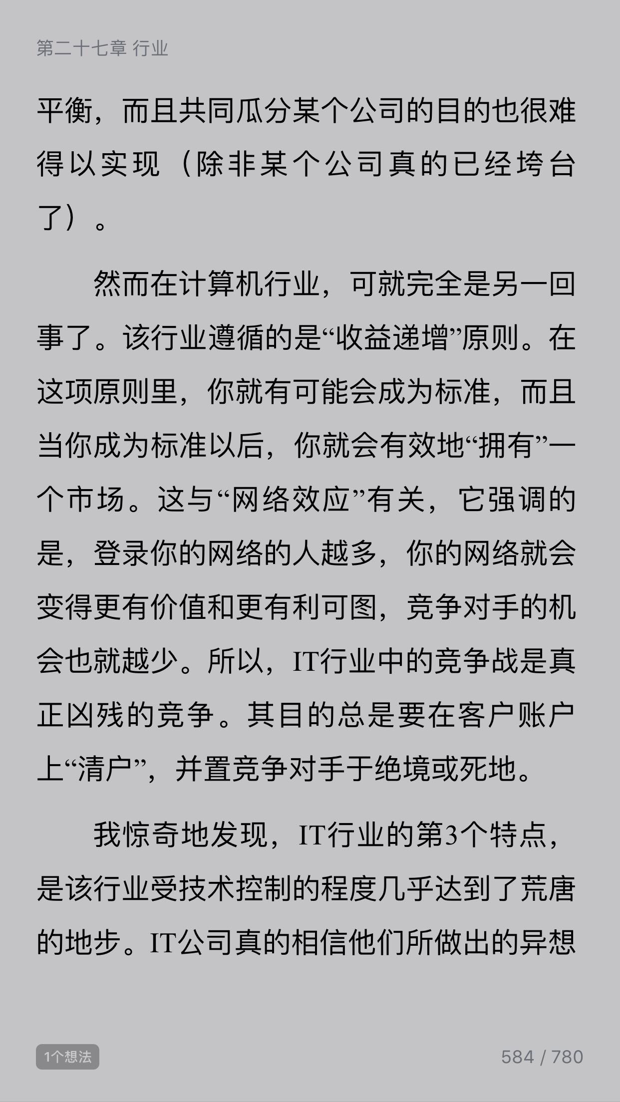 最伟大的公司变革操盘手之一、IBM前董事长郭士纳在自传中说,IT行业“受技术控制的程度几乎达到了荒唐的地步。IT公司真的相信他们所做出的异想天开的宣言,所有的公司每时每刻都在追寻下一次巨大的科技浪潮。”然而,他认为的那些异想天开的事情,随着技术进步,都变成了现实。看来不仅对运动员、政客,对企业家来说,激流勇退也是明智之举,要是郭士纳再恋栈几年,估计《谁说大象不能跳舞》就得改名叫《我是如何把IBM搞砸的》……