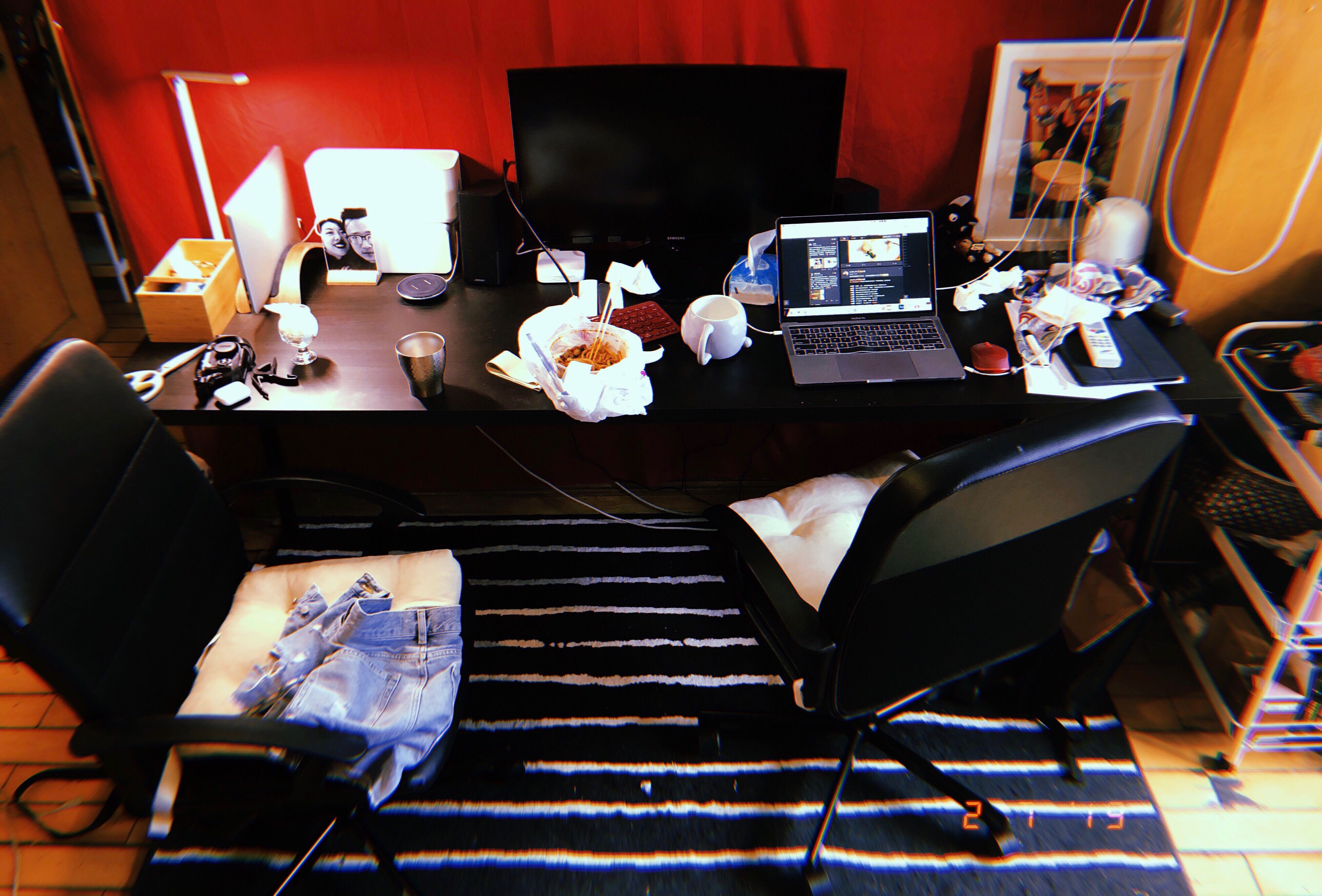 原来为了上班通勤要8点起床,如今从卧室到办公地点只有10几米,还不用化妆,9点准时到达这张桌子即可,多了一小时用来睡觉。