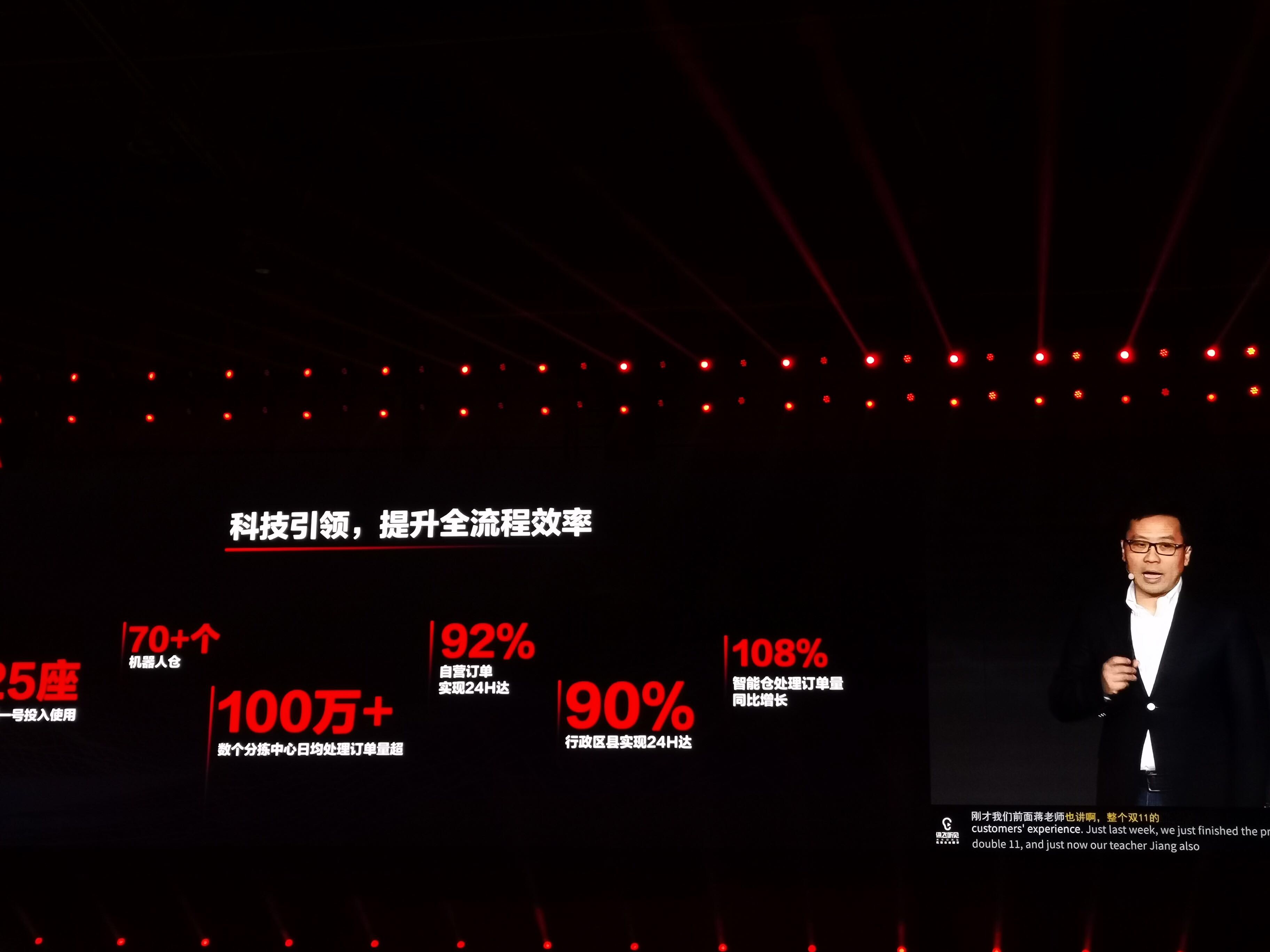 在今天上午的京东全球科技探索者大会上,京东物流CEO王振辉透露,在刚刚过去的双11大促里,24小时内收货的包裹达到92%。