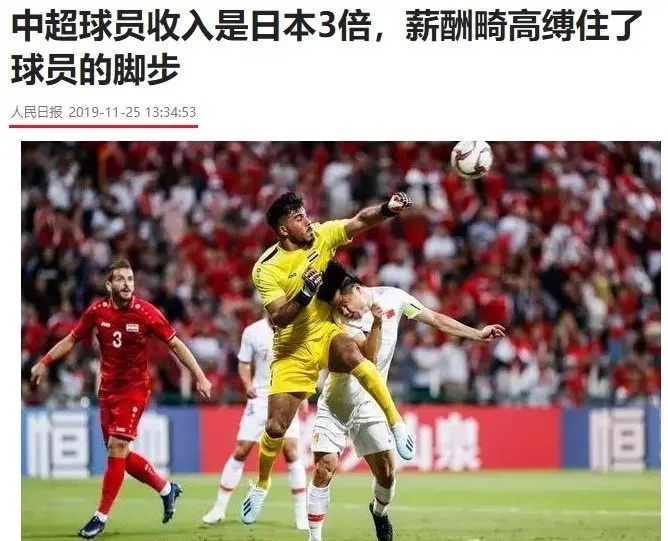 人民日报痛批国足:薪水是日本联赛的三倍,畸形高薪束缚了球员的脚步。