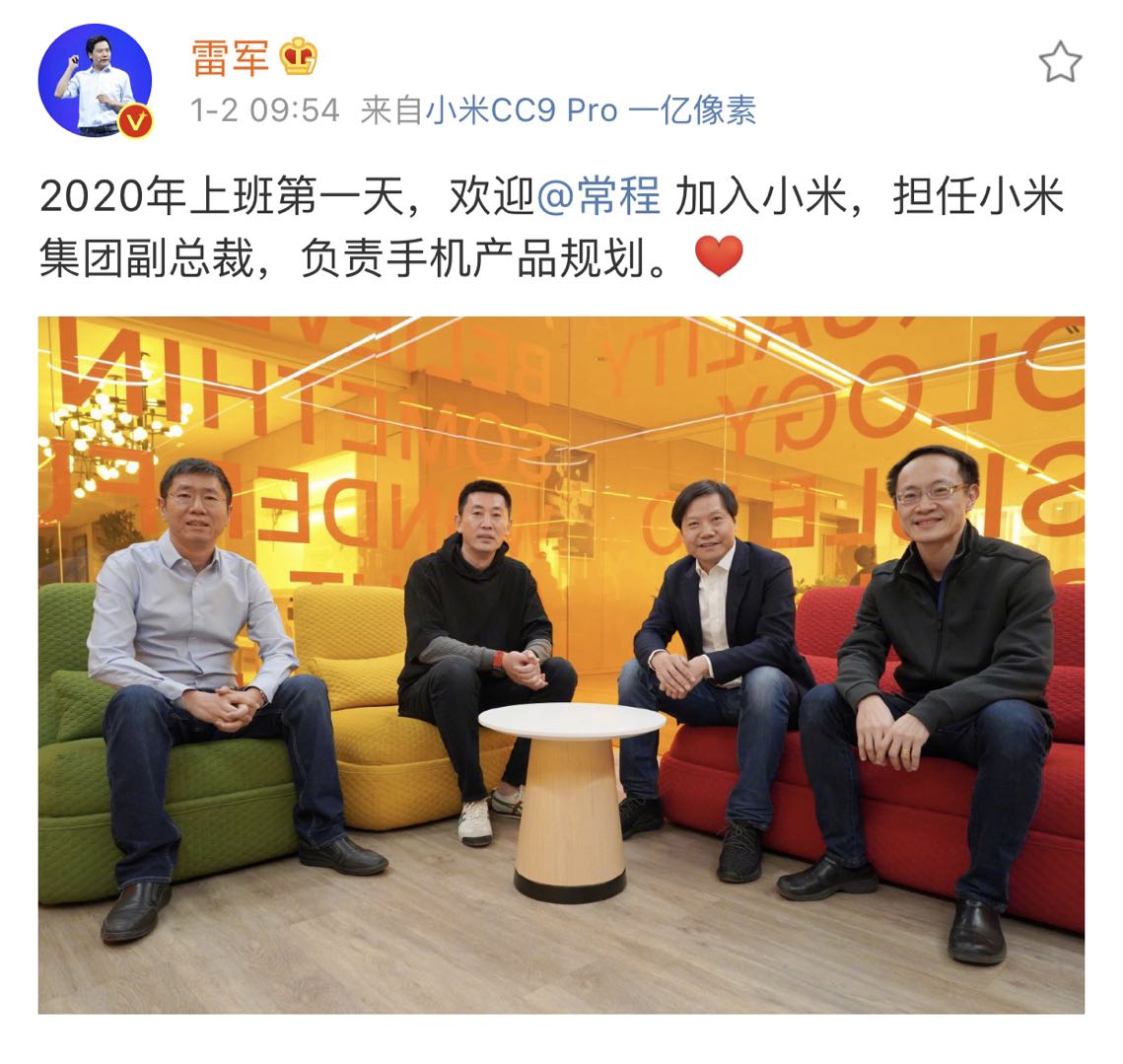 常程正式入职小米。