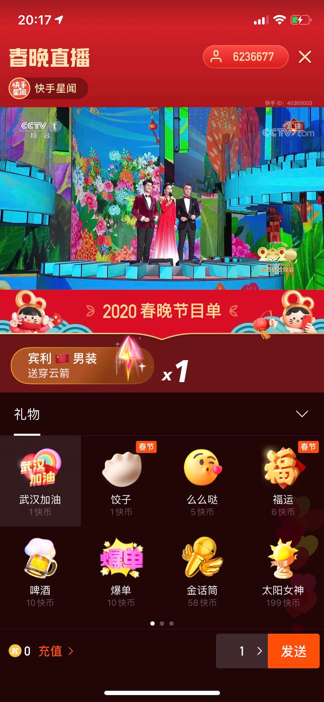 快手春晚直播间右下角上线武汉加油礼物,价值1快币。快手表示,礼物所得全部收入快手将捐赠给武汉慈善总会。此前1月23日下午,快手已向武汉市捐赠1亿元,用于抗击新型肺炎。