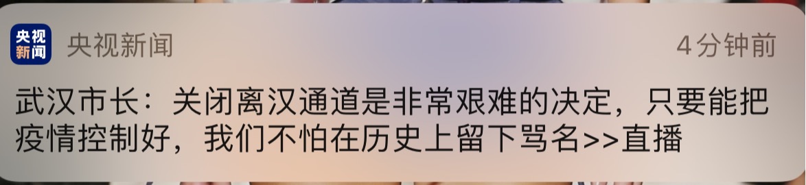 武汉市长周先旺:关闭离汉通道是非常艰难的决定,只要能把疫情控制好,我们不怕在历史上留下骂名。戳原文链接可围观央视对其正在进行的采访直播