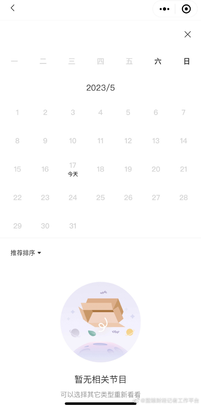单立人喜剧取消近期线下演出。据蓝鲸财经,5月17日,继笑果在京所有演出活动无限期暂停和上海暂停笑果文化在沪全部演出后,记者查询发现,有网友收到了单立人喜剧近期演出的取消通知。据悉,该线下演出本将于5月21日开演。记者进入“单立人喜剧”小程序购票页面,发现暂无相关节目门票可购。