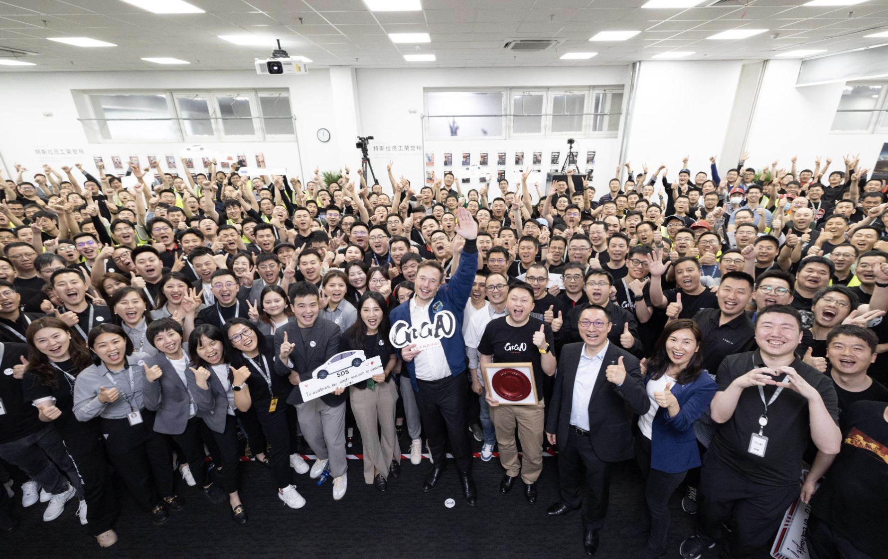 马斯克访问特斯拉上海超级工厂。6月1日,特斯拉CEO马斯克的私人飞机北京时间5月31日21时26分落地上海虹桥机场,3小时后的6月1日凌晨0时28分,特斯拉全球副总裁陶琳微博发布两张马斯克和员工的大合影,配文“感谢所有的支持! 收获满满的一天! ”,地点是特斯拉上海超级工厂。 据“飞常准”APP显示,马斯克的私人专机计划于周四早上离开上海飞往美国得州奥斯汀。