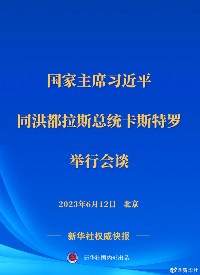 据央视新闻,6月12日下午,国家主席习近平在人民大会堂同来华进行国事访问的洪都拉斯总统卡斯特罗举行会谈。