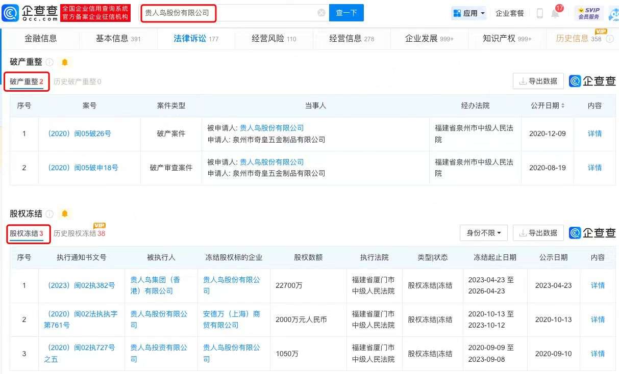 贵人鸟成被执行人。