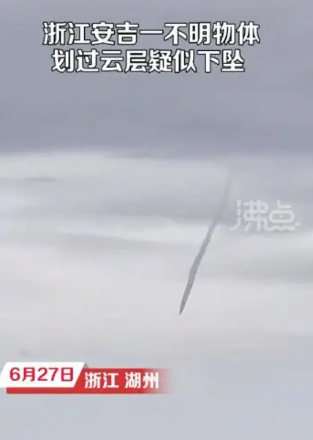 浙江现不明飞行物,冲破云层快速下坠。