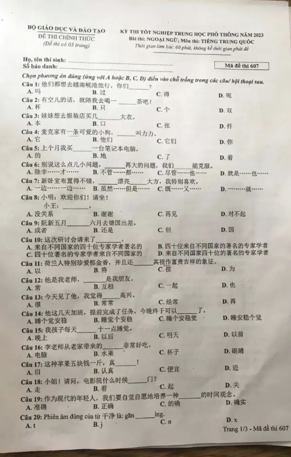 越南高考中文题冲上热搜!网友:原来看得懂完型是这种感觉。据新黄河,7月2日,有网友贴出了疑似“越南高考的中文题目”的图片,引发网络热议。这套中文题目包括单选和完形填空。看后,不少网友表示这题目难度不大,但总感觉哪里有点儿怪;也有网友称,原来做完型看的懂是这种感觉。据悉,俄罗斯“高考”也从2023年起试行将汉语列入外语考试科目。下面是网友贴出的俄罗斯之前的高考部分中文题目。
