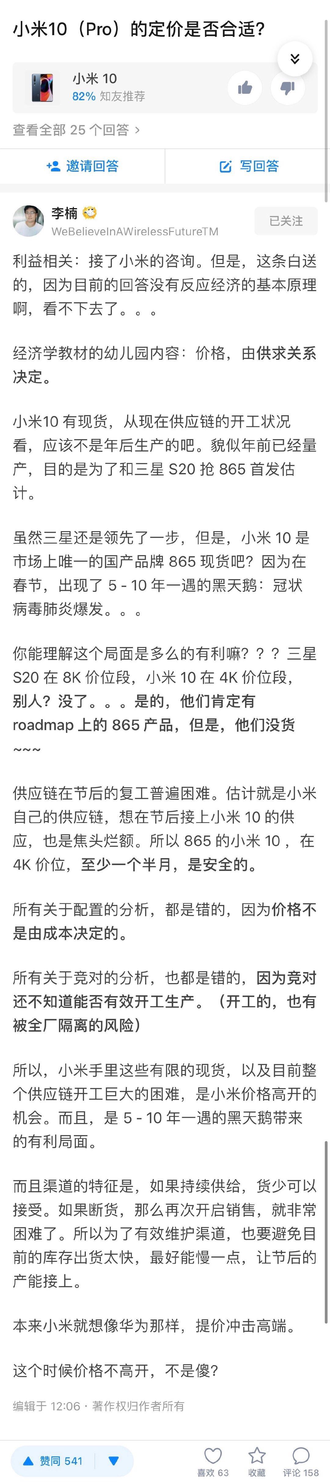 李楠对小米10价格的点评,你们怎么看?