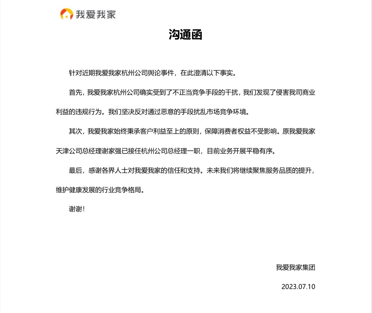 这是对周末发酵的我爱我家杭州分公司全体高管(总监及以上)停职的最新回应。