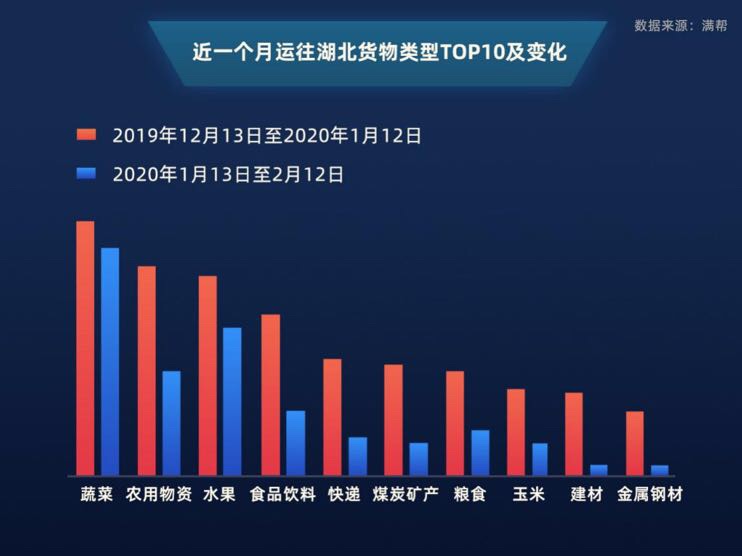 武汉封城一周后,由武汉出发的货物相较前一周锐减92.7%,发往武汉的货物量整体下降75%。看明白封城前后发往武汉及周边各市的货物的变化类型,就能大概知道那儿的老百姓此刻最需要什么,以及有多难。(数据来源:满帮)