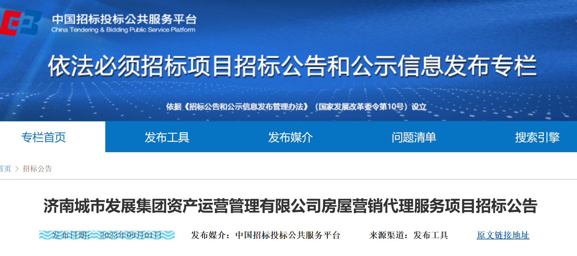 这则信息的来源,是济南城发集团旗下公司发布的一则招标公告。