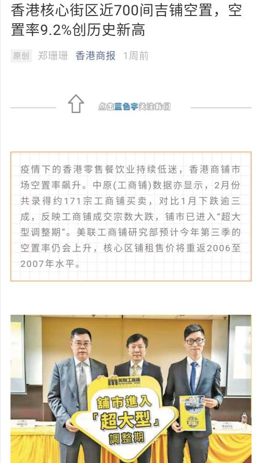 受疫情影响,不少行业都因此步入「寒冬期」,疫情下的香港餐饮业更是持续低迷,香港商铺市场空置率飙升。香港核心街区近700间吉铺空置,空置率9.2%创历史新高。生意额跌90%逾千食肆或结业,香港餐饮联业协会会长黄家和在21日建议政府提供借贷。希望政府能透过紧急救命钱方式,尽快提供支援。