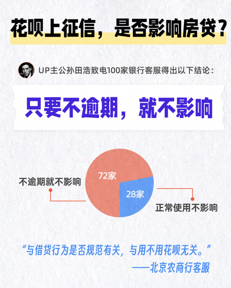 据红星新闻,“花呗上征信,影不影响买房?”近日哔哩哔哩有UP主针对市场上一则“花呗上征信影响申请房贷”的传言,拨打了多达100家不同类型银行客服电话求证,结果所有银行客服人员均表示,正常使用花呗不会影响房贷申请。该话题成为今天的微博热搜。