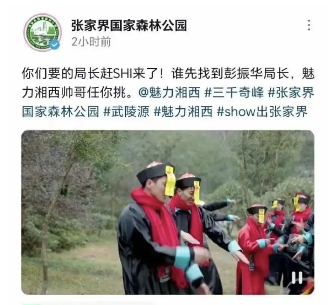 据红星新闻报道,1月16日,一张网传“赶尸”截图引发热议。当天张家界国家森林公园管理局一名负责相关宣传的工作人员回应称,网上热传的“赶尸”视频确实是张家界国家森林公园发布的,但是后面考虑到彭局长并未出镜拍摄,且在网络上引发了舆情,所以已将视频删除。