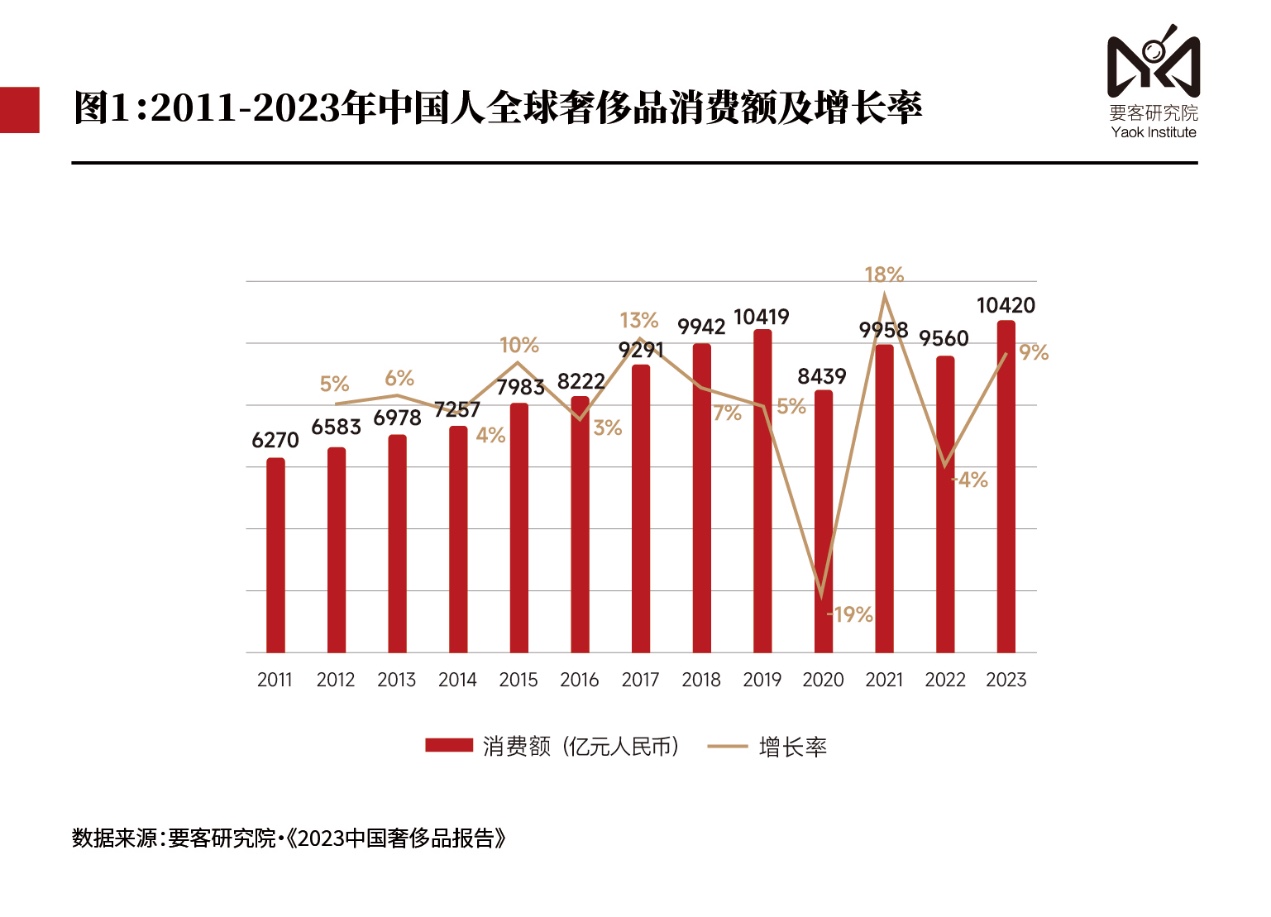 1月18日,要客研究院最新发布的2023年《中国奢侈品报告》显示,2023年,尽管经济恢复不如预期,但中国奢侈品市场已然保持了11%的双位数增长(达到6077亿元人民币),在全球奢侈品市场的占比维持在22%左右。