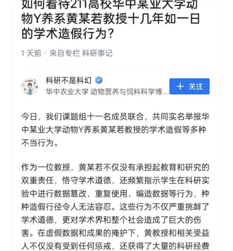 华中农大教授回应被11学生举报学术不端:举报全部不实,三天来写回复材料每天只睡一两小时。