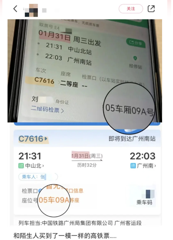两乘客买到“同日同座”高铁票,12306回应来了。