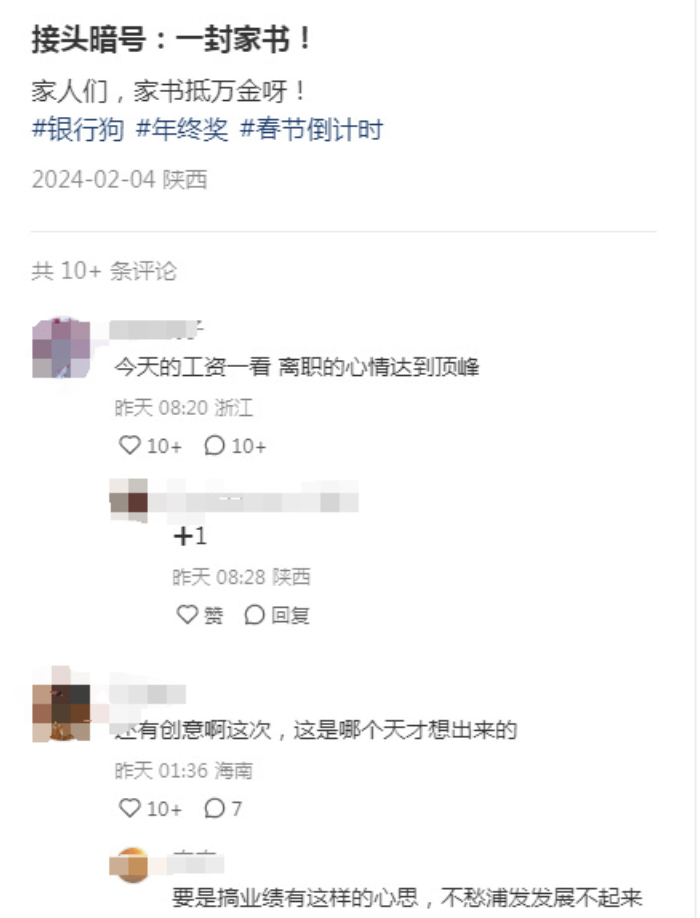 家书抵万金?网曝浦发银行不发年终奖发一封家书。近日有网友爆料称,浦发银行所有分行,年终奖化为一封家书。据悉,该行采取了基本工资加年终奖的模式。普通员工的年收入主要依赖于年终奖,这意味着整年的努力只能换来一封家书。有员工吐槽称,两天无法平静,百日攻坚连三月,一封家书抵万金。