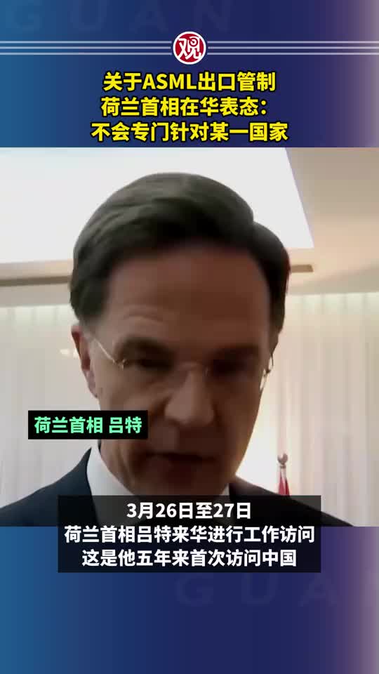荷兰首相在华就光刻机出口管制表态。