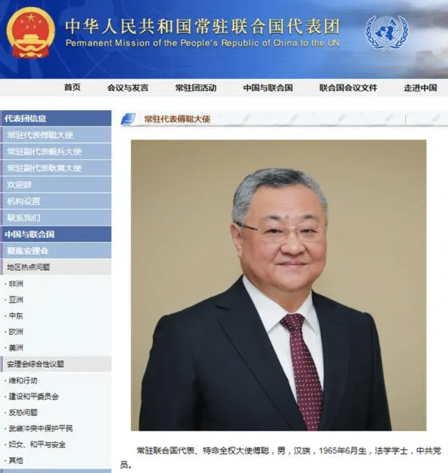 据中华人民共和国常驻联合国代表团网站,傅聪已任中国常驻联合国代表、特命全权大使。