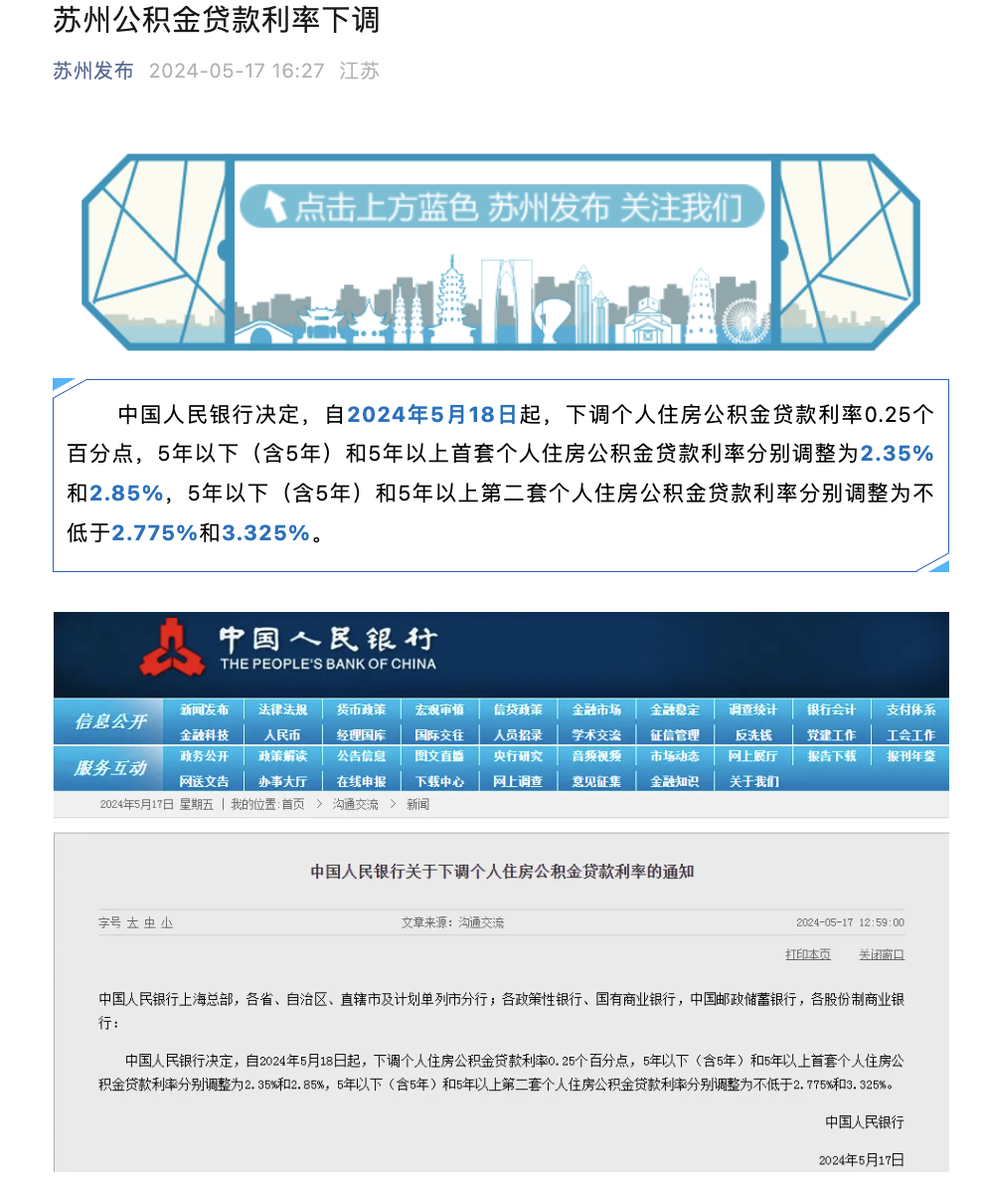 苏州公积金贷款利率下调。5月17日,据苏州发布,根据央行决定,苏州公积金贷款利率下调。对于2024年5月18日以前已经发放的个人住房公积金贷款,自2025年1月1日开始,执行调整后的利率。对于2024年5月18日前申请且未发放的个人住房公积金贷款,执行调整后的个人住房公积金贷款利率。2024年5月18日后申请的个人住房公积金贷款,按照调整后的利率执行。