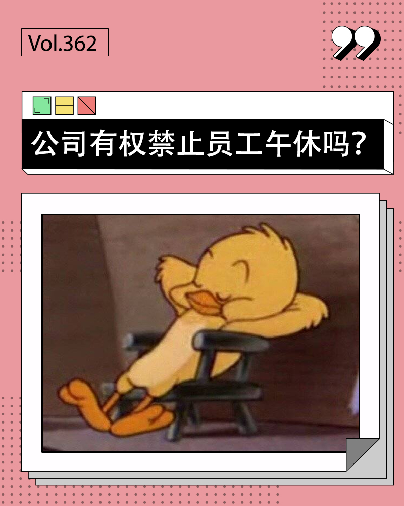 近日,一公司发布通知:入冬后禁止午间趴在桌上午睡,引发广泛关注。后该公司回应称:并未禁止员工午睡,只是建议大家不要趴在桌子上睡,“万一感冒发烧了,大家都不方便”。网友对该回应并不买账,认为这是打着“为你好”的旗号想取消午休。部分网友指出午休是职场人工作日的加油站,该权利不该被剥夺。但当下普遍存在两种困境:企业不提供午休条件,或常被人打扰。公司有权禁止员工午休吗?午休占用的是工作时间吗?